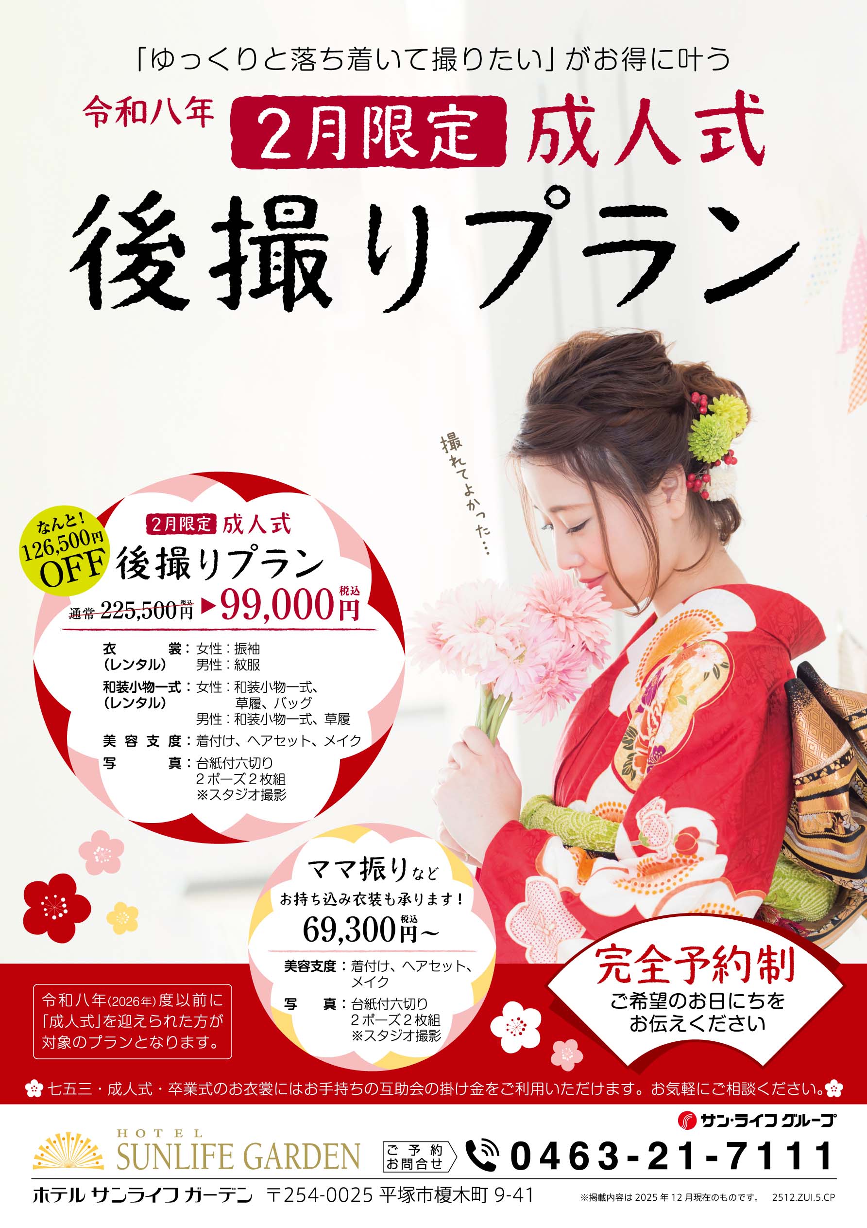 着付・ヘアセット・メイクと写真2ポーズがついて、 69,300円(税込)でのご案内が可能でございます!!