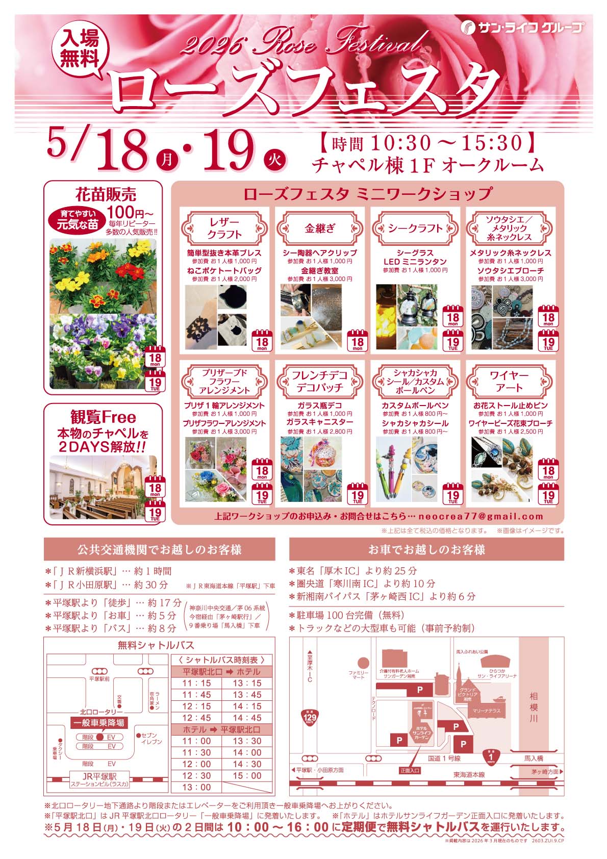 2026年5月18日(月)・19日(火) 「ローズフェスタ」が開催いたします